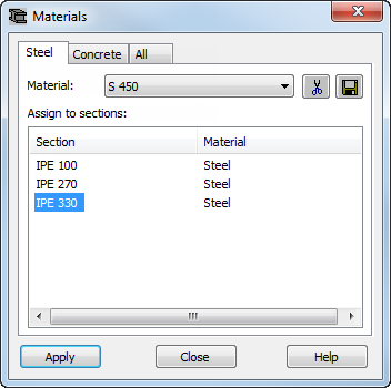 You will now make them stronger in two ways. First you will set the material for a section to a higher steel grade and then you will change the size of the section used by the roof beams.
