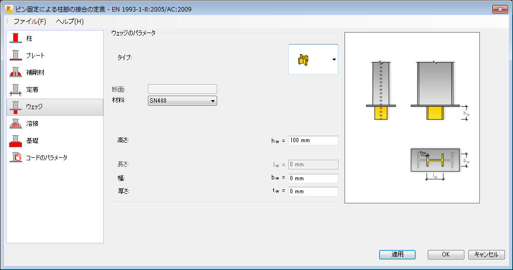 [ウェッジ]タブでは、せん断の接合を強化するウェッジのパラメータを定義します。