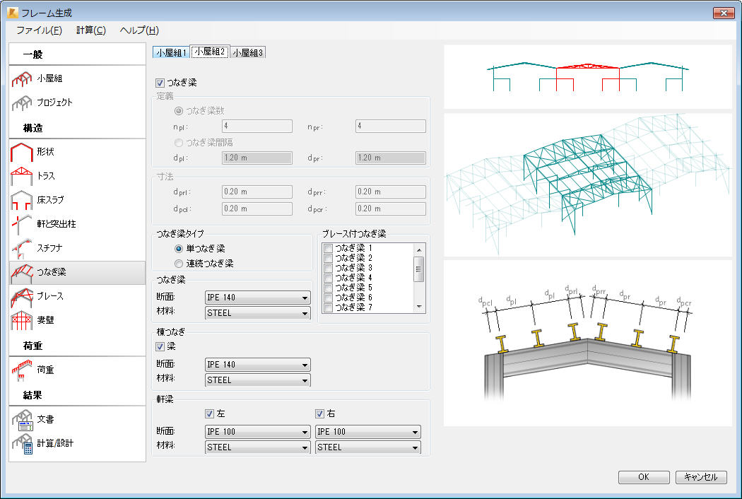 このタブのオプションを使用して、母屋桁形状の基本的な情報を定義します。