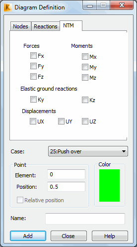 Use this dialog to define diagrams of quantities calculated during pushover analysis.