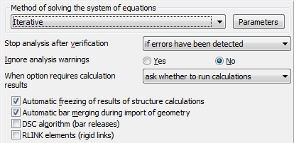 - Enables elements of the RLINK type during calculations of a structure where rigid links are defined.