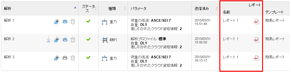 結果は、Autodesk® 360 Structural Analysis の Web サイトで、定義されている解析レポートの形式でも利用できます。レポートは HTML 形式または PDF 形式で表示できます。結果をダウンロードしてローカルに保存することもできます。
