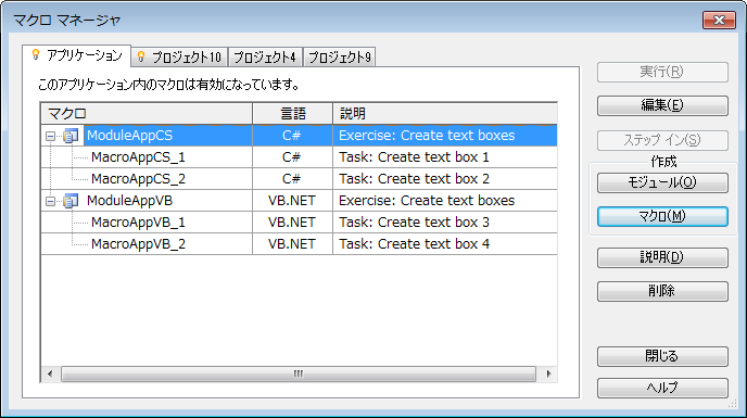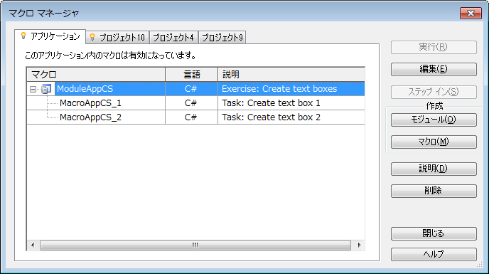 マクロを管理、実行するには、マクロ マネージャを使用します。