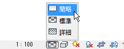 作図領域の下にあるビュー コントロール バーで、[詳細レベル]アイコンをクリックして、オプションを選択します。