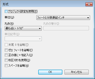 既定では、[プロジェクト設定を使用]オプションはオンになっています。これは、プロジェクトの[単位]設定に従って数値が表示されることを意味しています。