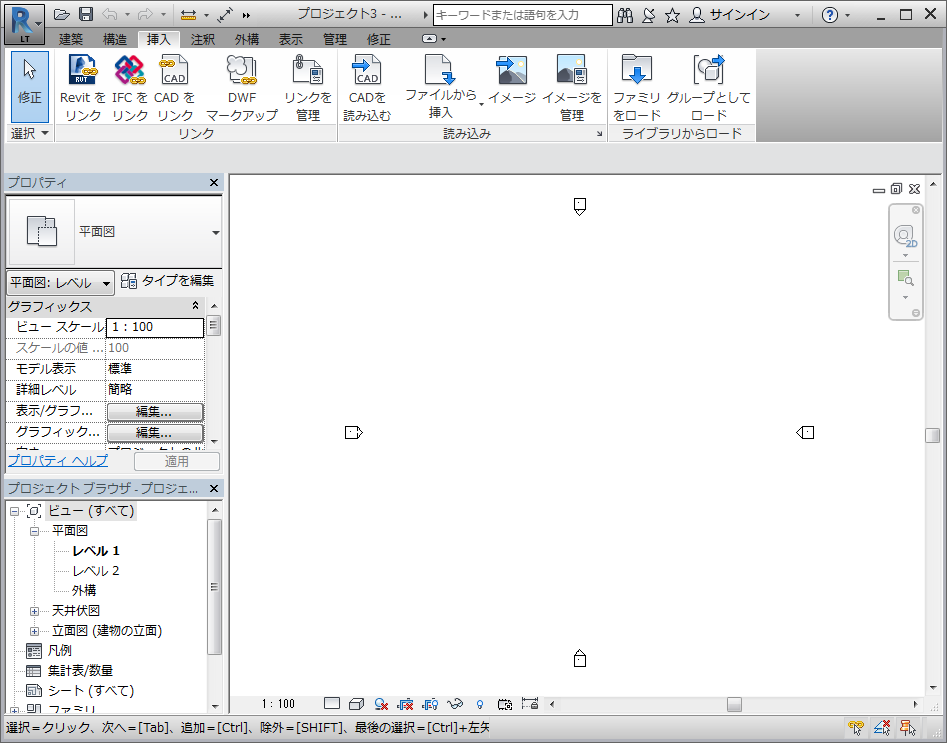 作図領域には、現在のプロジェクトのビュー、シート、集計表が表示されます。プロジェクト内のビューを開くと、開いている他のビューの上で、作図領域のビューが表示されます。