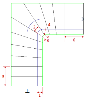 | 始端の平行踏み面 | 曲り階段経路の先頭に追加する平行ステップの任意の数を指定します(曲り階段プロパティの 5 を参照してください)。 |