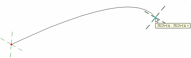 スイープ ブレンド パス上のプロファイル 1 の端点がハイライト表示されます。
