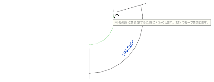 既設の壁または線分の端点から、接線円弧を作成することができます。