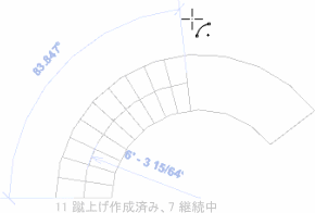 - カーソルを反時計回りまたは時計回りに移動して回転方向を設定し、クリックして階段経路の終端位置と蹴上げの合計数を指定します。