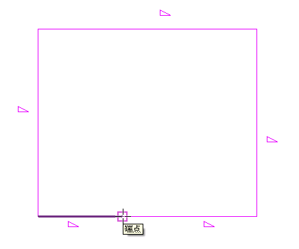フットプリントの線分のうち 1 本を 2 個所で分割して、中心線セグメント(ドーマ セグメント)を作成し、[修正]をクリックします。