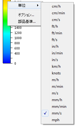 グローバル結果は、グラフィックスウィンドウの凡例に反映されます。凡例の単位を変更すると、測定時の出力単位が変更されます。