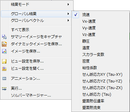 注意: グローバル結果モードがアクティブな場合、結果エンティティを変更することはできません。しかし、結果タスクでモデル全体の結果表示をコントロールするには、モデルの上または外側で右クリックし、グローバル結果およびグローバルベクトルコントロールから適宜選択することができます: