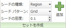 [セットを作成]コンテキスト リボンで、[シードの種類]を[細分割領域]、[シード パターン]を[グリッド]、[シードの密度]を 0.1 に設定します。[追加]をクリックします。
