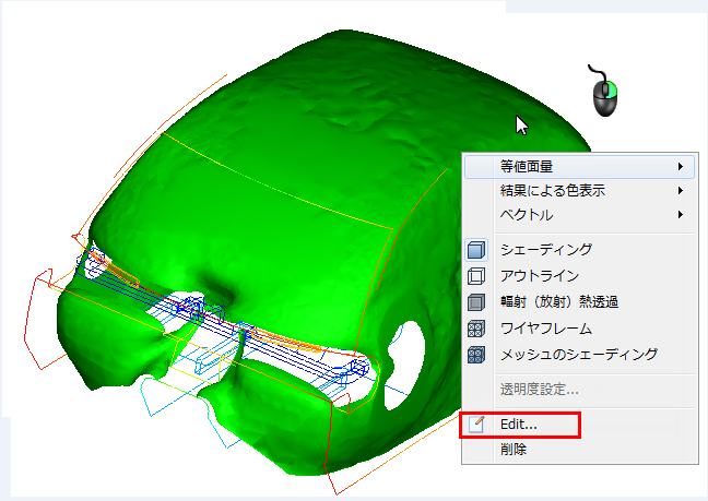3. モデルの外側を右クリックし、[等値面を追加]を選択します。(または等値面状況依存パネルで追加をクリックします。)