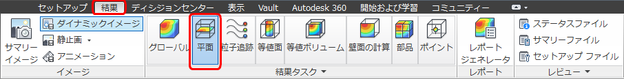 このステップでは、結果平面を使用して、バルブを通過する流れを表示します。