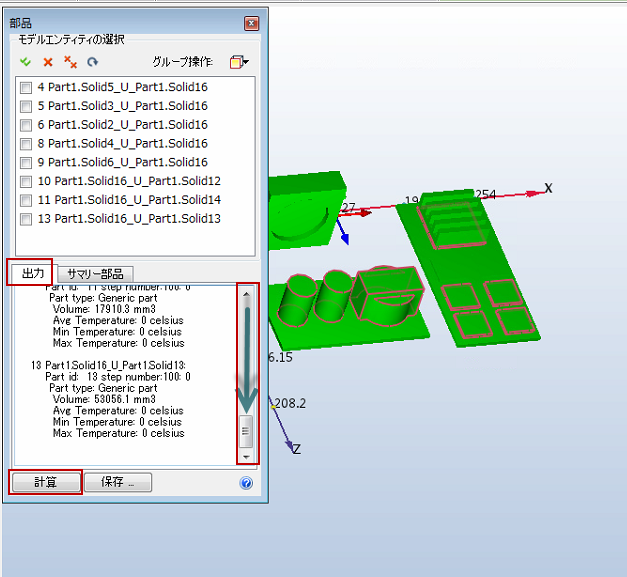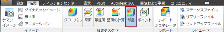 8. [結果] (タブ) > [結果タスク] (パネル) > [部品]をクリックします。