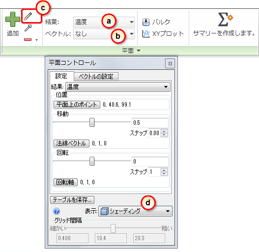 2. [結果] (タブ) > [結果タスク] (パネル) > [平面]をクリックします。