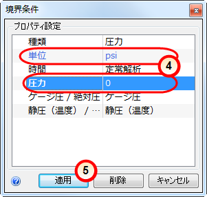 4. 単位は Psi、圧力の値は 0 のままにします。