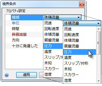 3. [種類]の行で[圧力]を選択します。