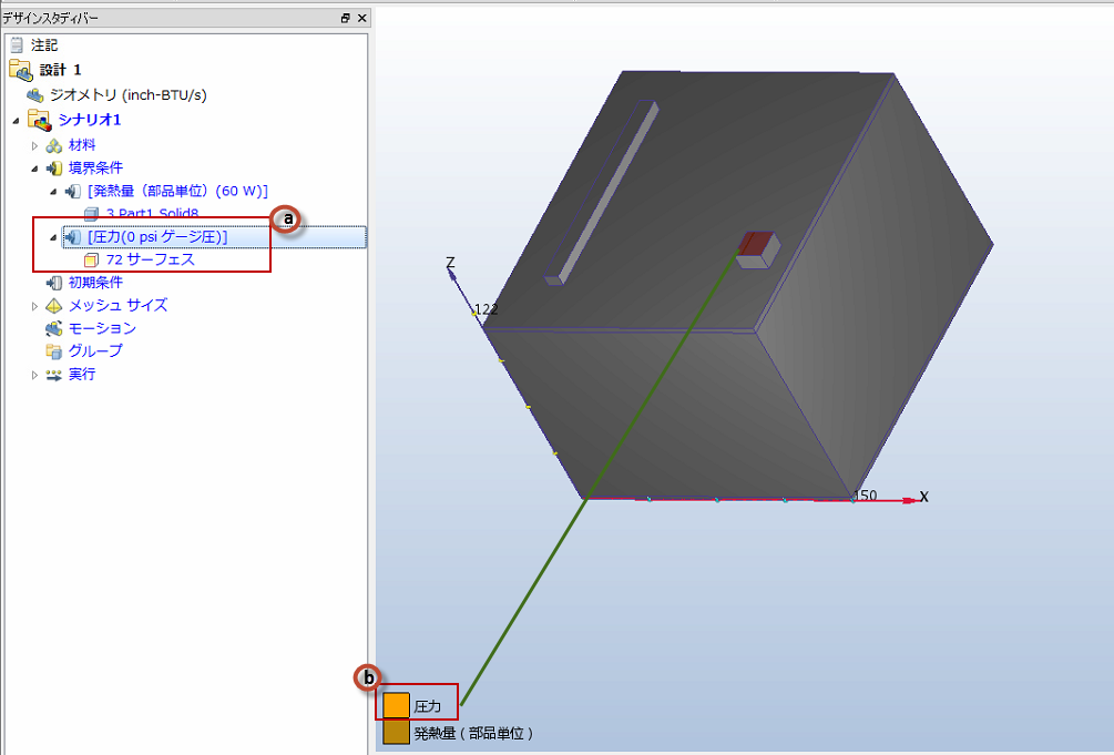 a. デザイン スタディ バーで、[圧力]条件の値が 0 psi である必要があります。