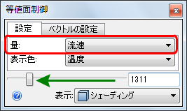 7. [ベクトルの設定]タブをクリックし、[流速ベクトル]を選択して、ベクトルを表示します。