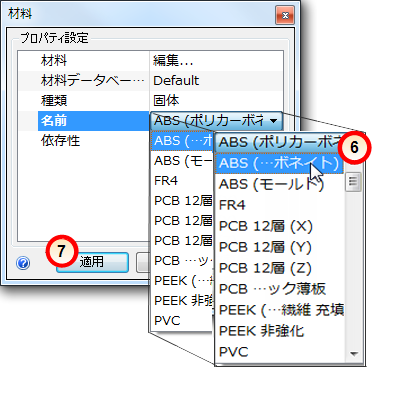 6. [名前]メニューから[ABS (モールド)]を選択します。