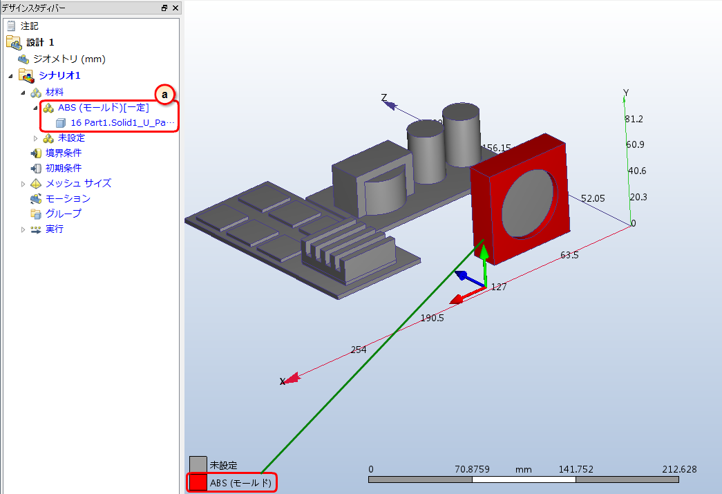 a. デザイン スタディ バーで、[ABS (モールド)]の部分に対する材料割り当てを確認します。