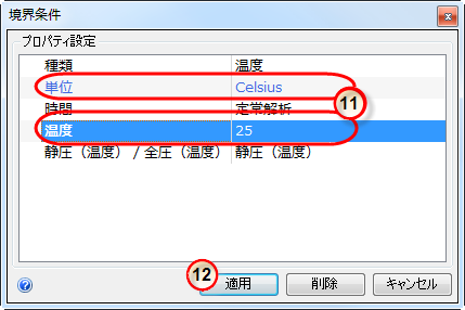 11. [単位]が[Celsius]であることを確認します。[温度]行に 25 と入力します。