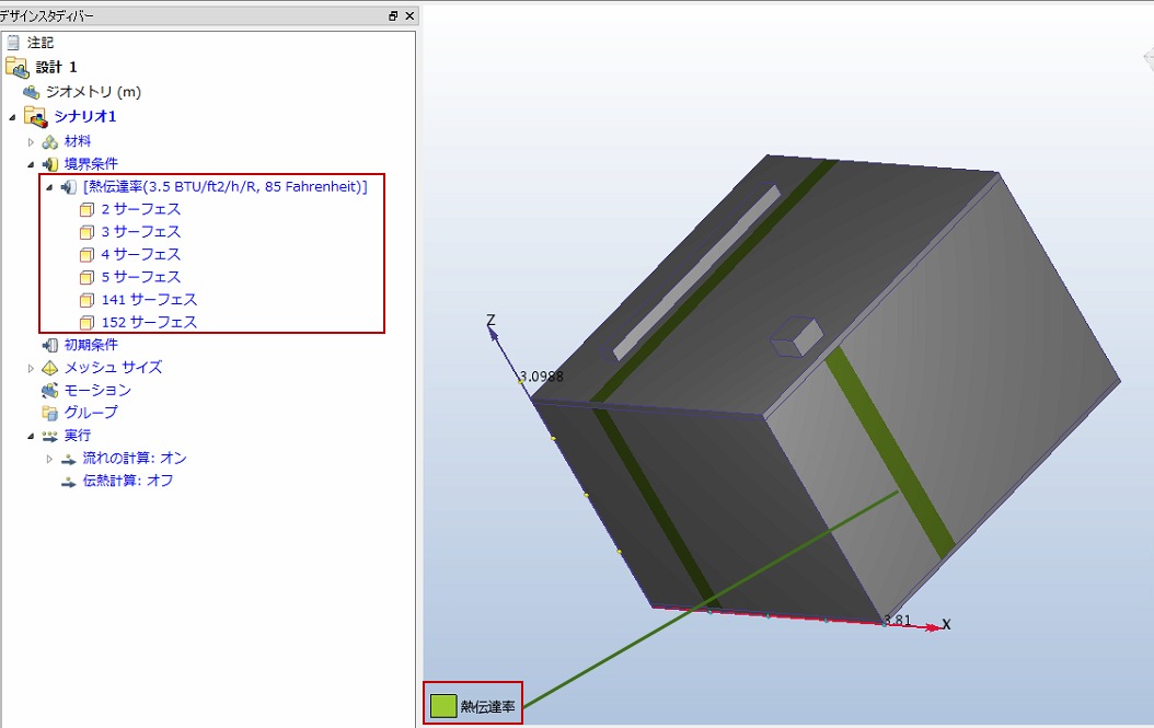 9. 熱伝達率境界条件が外側サーフェスに適切に適用されているかどうかを確認するには、デザイン スタディ バーとサーフェス上の色付きのストライプを確認します。