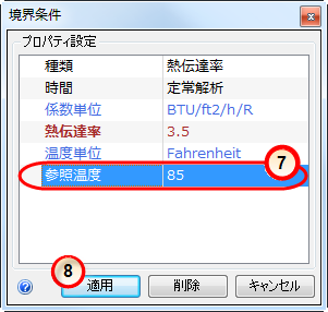 6. [熱伝達率]行に 3.5 と入力し、[温度単位]が[Fahrenheit]であることを確認します。