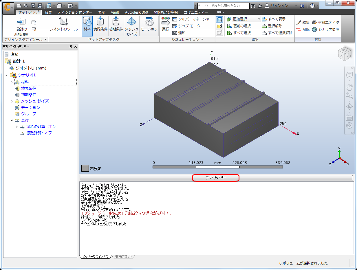 1. いくつかの追加の画面スペースを開くには、[アウトプット バー]ボタンをクリックしてアウトプット バーを折りたたみます。