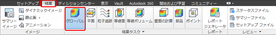 5. [結果] > [結果タスク] > [グローバル]の順にクリックします。