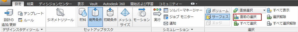 9. 再度給気サーフェスを選択するために、[設定] (タブ) > [選択] (パネル) > [直前のエンティティを選択]をクリックします。