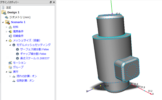 モデルの各エッジに沿って青いドットが表示されています。これらの点で、メッシュ分布の簡単なプレビューが示されます。