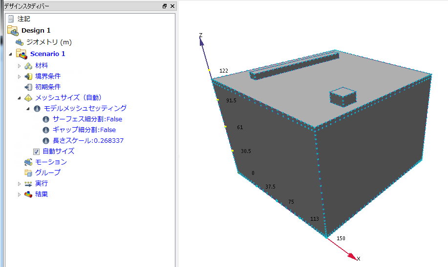 この手順では、メッシュ分割が自動的に行われるように設定します。(これは簡単な作業です)。