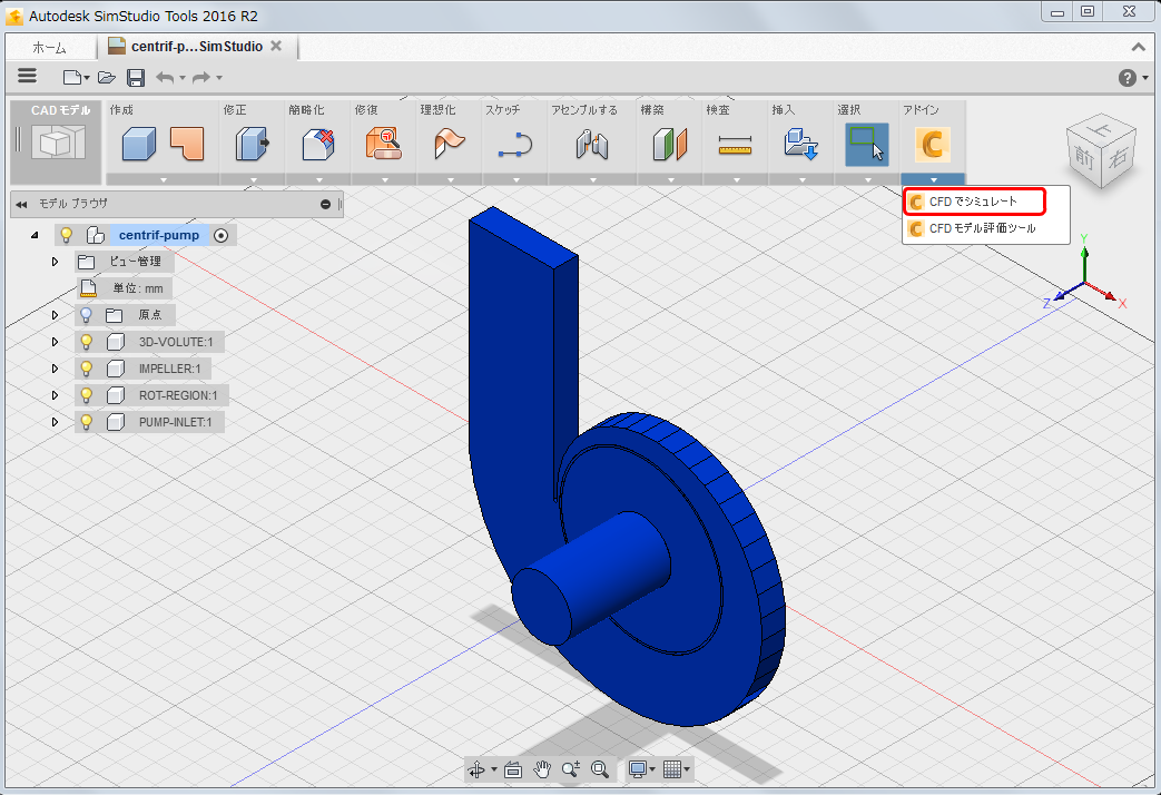 [アドイン]メニューを展開して、[CFD でシミュレートする]を選択します。