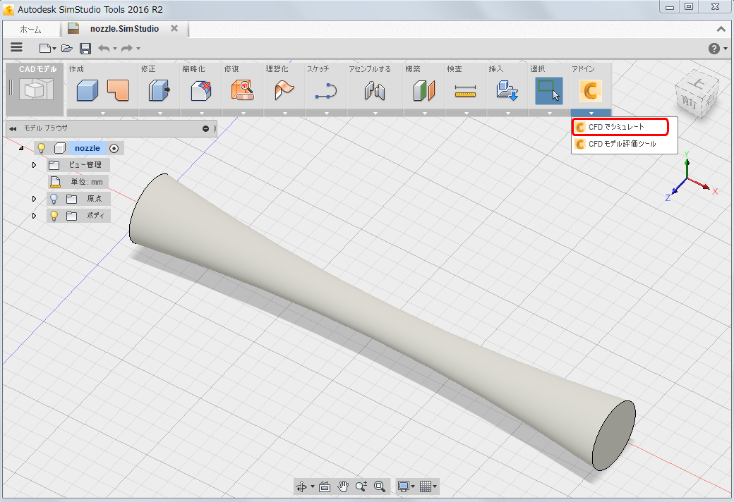 [アドイン]メニューを展開して、[CFD でシミュレートする]を選択します。