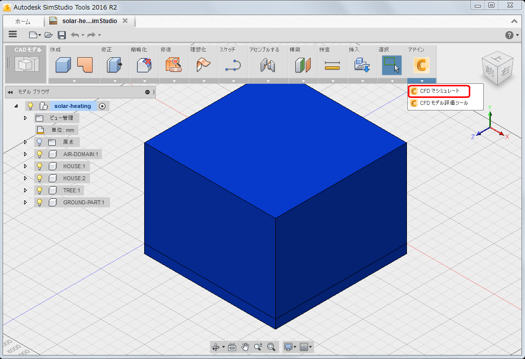 [アドイン]メニューを展開して、[CFD でシミュレートする]を選択します。