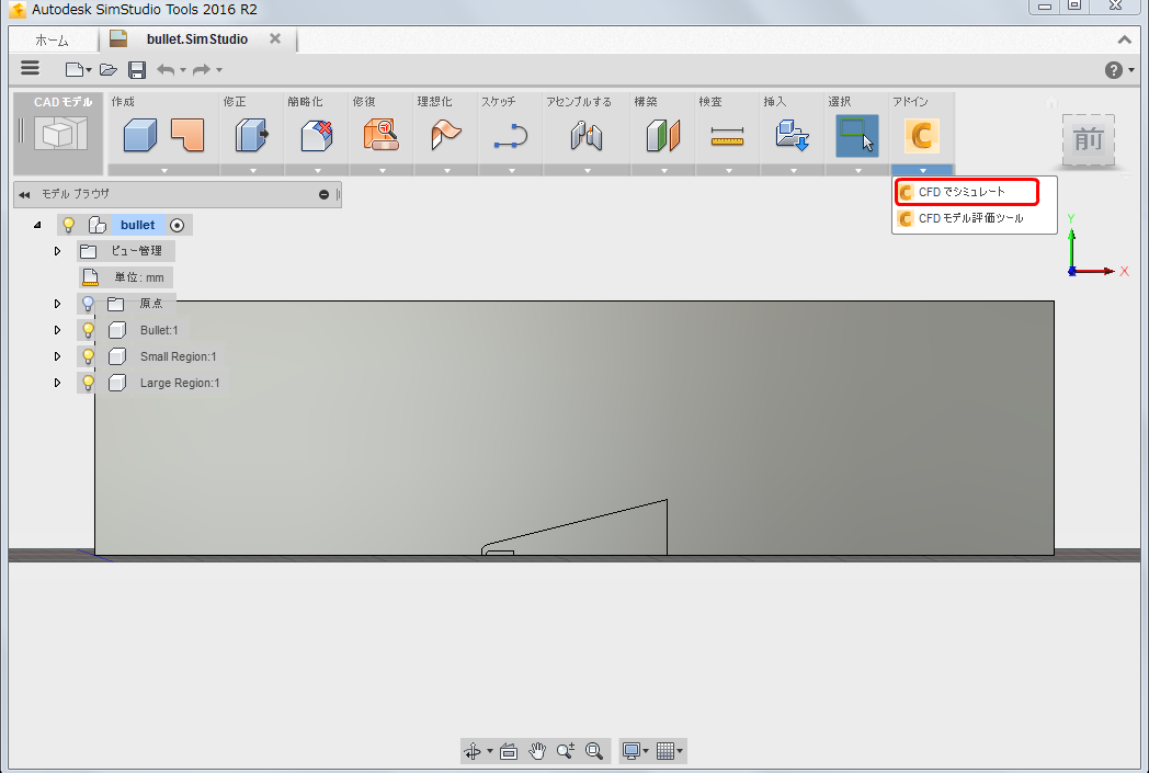[アドイン]メニューを展開して、[CFD でシミュレートする]を選択します。