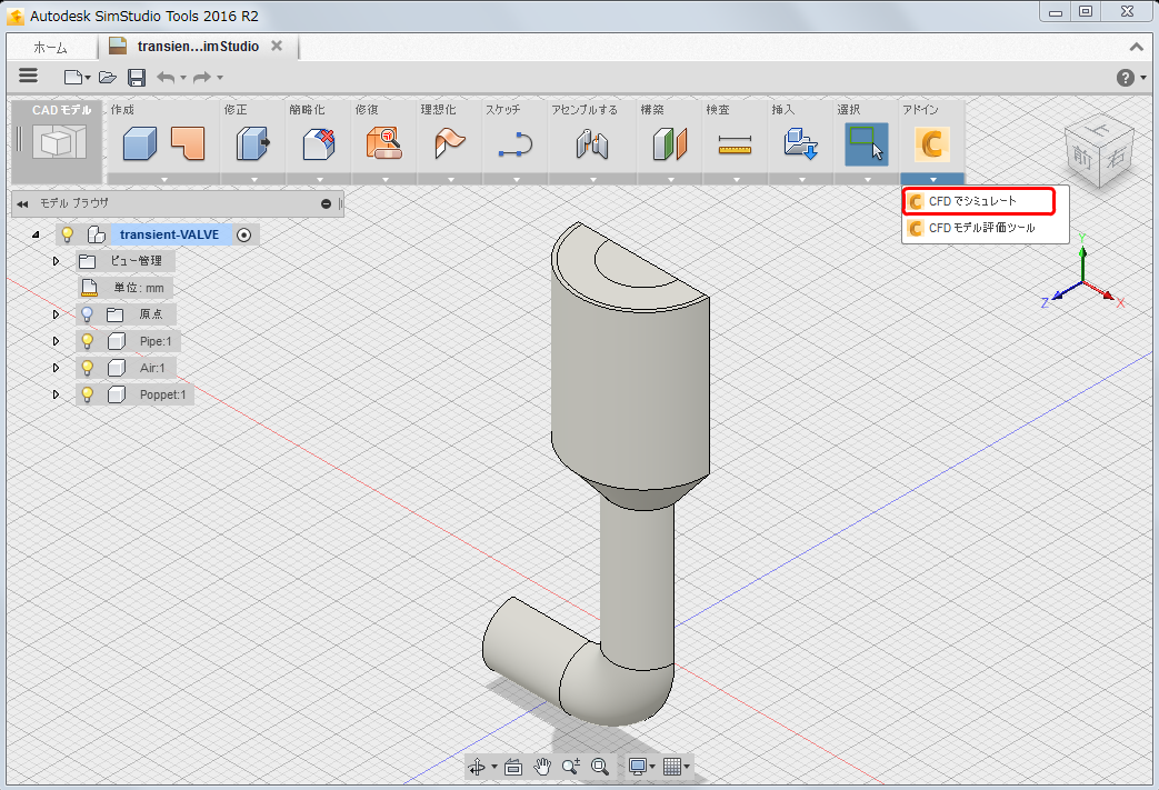 [アドイン]メニューを展開して、[CFD でシミュレートする]を選択します。
