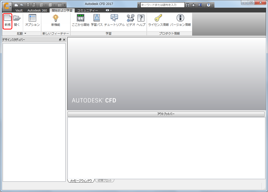 Autodesk ® CFD が起動し、チュートリアル用のデザイン スタディを作成します。