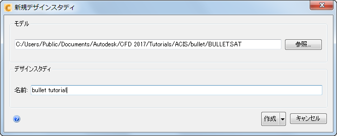 [ファイル マネージャ]ダイアログで、Users\Public\Public Documents\Autodesk\CFD 2017\Tutorials¥<ファイル タイプ>¥bullet にナビゲートします。