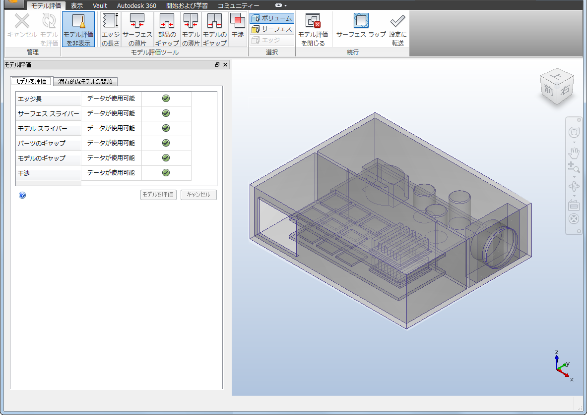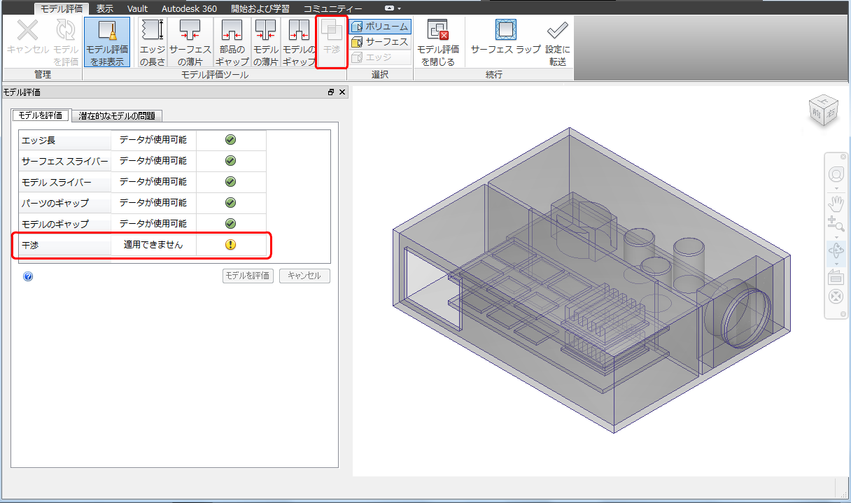 電子機器筐体のアセンブリ モデルに戻って[干渉]ツールを使用すると、チップと基板の間に 12 の干渉の問題が見つかります。