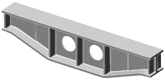 In this tutorial, we determine the displacement and the stress distribution of the support beam due to a uniformly applied, downward force acting on the middle portion of the top flange. The top of the beam has already been split into three separate surfaces to confine the load to the intended portion of the span. We use 3D spring supports instead of rigid constraints to prevent local stress exaggeration at the support areas.