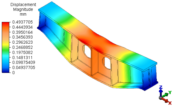Magnitude. The maximum displacement is now slightly less than the allowable displacement of 0.5 mm, as shown below.