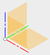 Origin heading in the browser to show the global planes and axes in the drawing canvas. The bulb icon is gray when visibility is off and amber when visibility is on. If you correctly set the default model orientation (preceding step), the origin appears as shown below. The red, green, and blue lines correspond to the X, Y, and Z axes, respectively; and Z is the vertical axis: