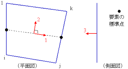 図 3: プレート要素のローカル 1 軸および ローカル 2 軸