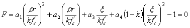 ここでは、ft' および fc' はそれぞれ一軸引張力と圧縮力(絶対値)です。e は Kang and Willam で定義された偏心度です。