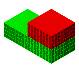 | 2 つの部品のアセンブリ(部品ごとに色分け)。 | |